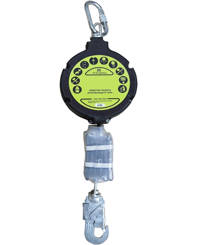 Используемый механизм втягивания ленты уменьшает глубину возможного падения, осуществляет быструю блокировку, уменьшая нагрузку и риск получения травмы при падении.