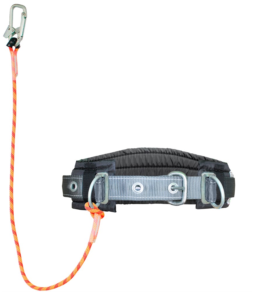 Состоит из ремня с пряжкой, уширенного кушака, двух D-колец и стропа из полиамидного каната с монтажным карабином. Пояс упакован в водонепроницаемый пакет и содержит паспорт и инструкцию по применению.