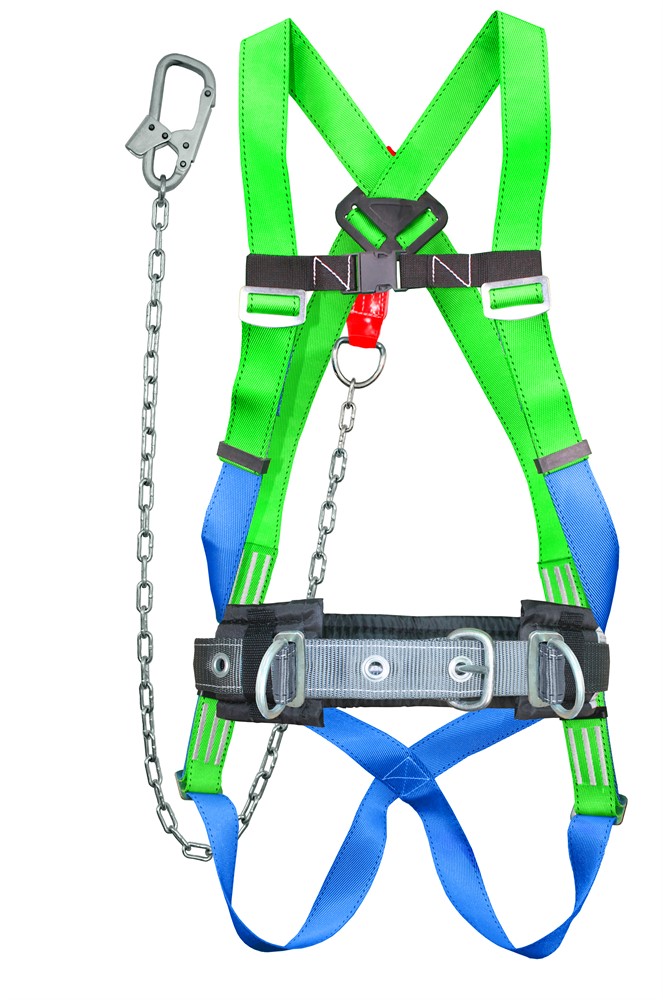 Тип "ДаГ" - Пояс предохранительный строительный с наплечными и набедренными лямками, и стропом из металлической цепи с амортизатором.