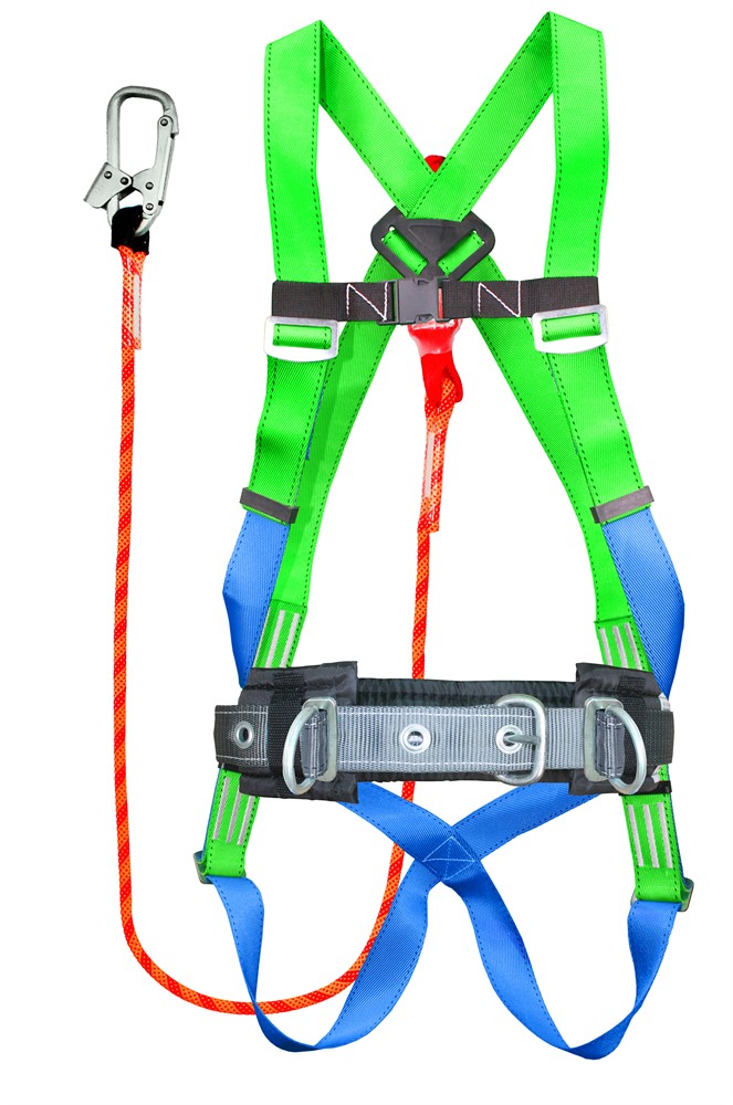 Состоит из ремня с пряжкой, наплечных и набедренных лямок, кушака, двух D-колец на поясе (для удержания и позиционирования) и одного на спине, и стропа из полиамидного каната с амортизатором и монтажным карабином. Пояс упакован в водонепроницаемый пакет и содержит паспорт и инструкцию по применению.