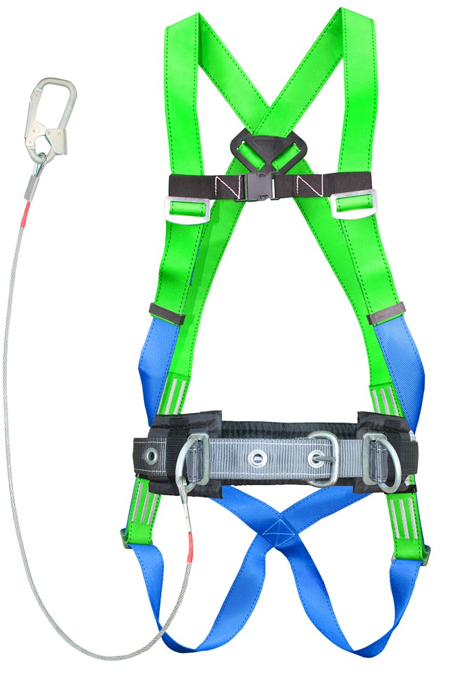 Тип "ДБ" - Пояс предохранительный строительный с наплечными и набедренными лямками, и стропом из металлического троса в ПВХ оболочке.