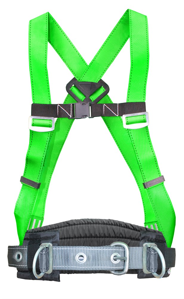 Состоит из ремня с пряжкой, наплечных лямок, уширенного (широкого) кушака, двух D-колец на поясе (для удержания и позиционирования) и одного на спине (для страховки или спасательных работ и экстренной эвакуации). Пояс упакован в водонепроницаемый пакет и содержит паспорт и инструкцию по применению.