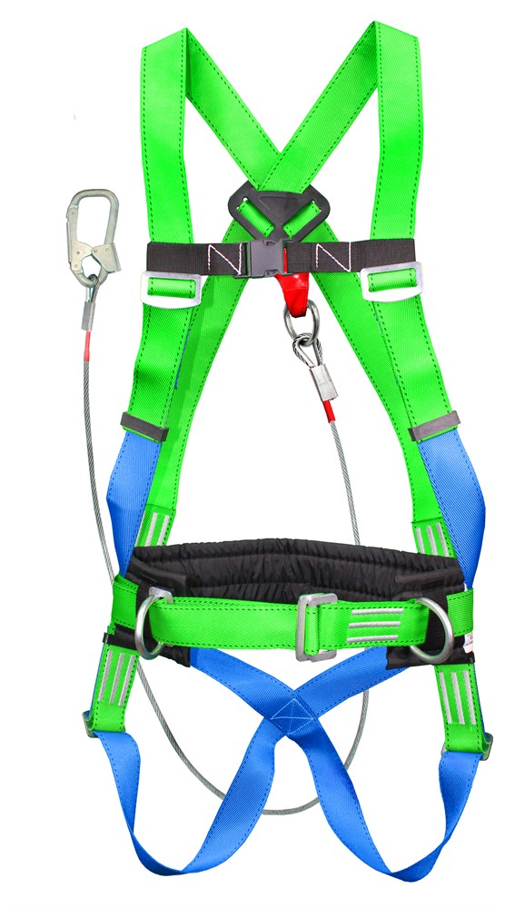 УС 2 аБЖ - Страховочная система с наплечными и набедренными лямками со стропом из металлического троса в ПВХ оболочке с амортизатором.