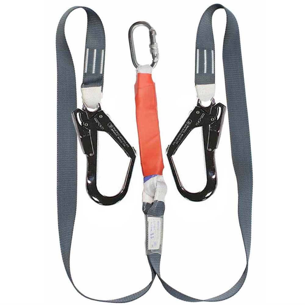 Строп аАд К50+Кc NL. - страховочный строп, двойной (двуплечий) из полиэфирной ленты с амортизатором, с двумя большими монтажными карабинами и одним соединительным карабином