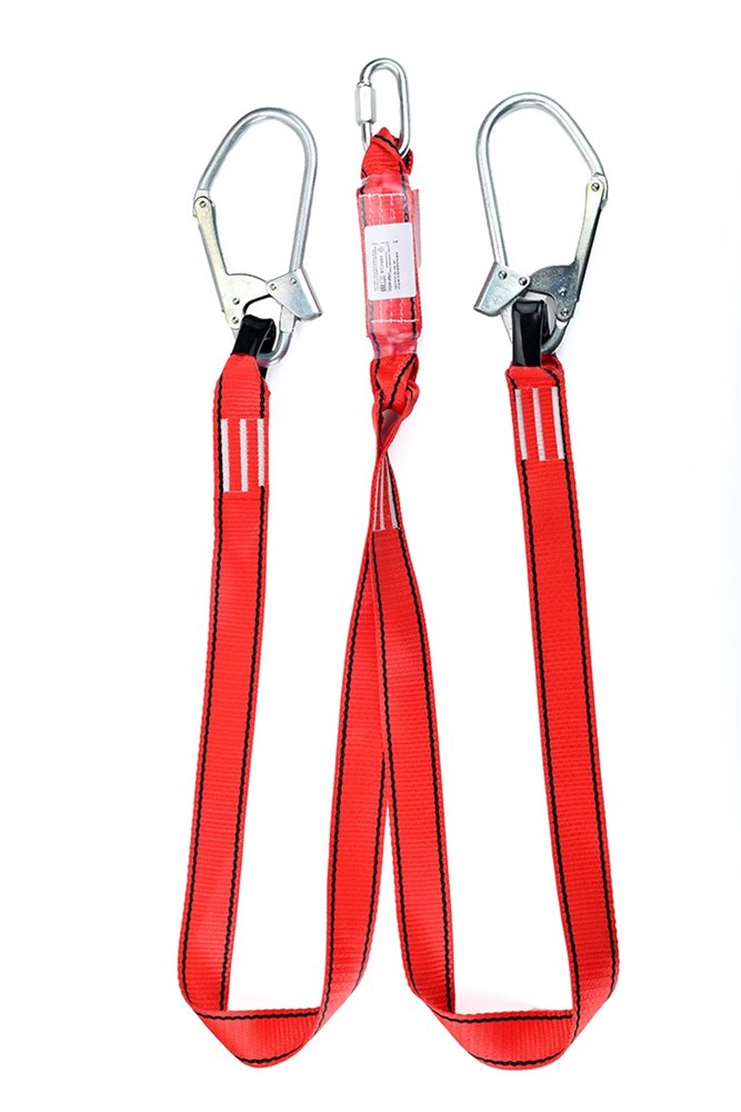 Строп аАд К50+Кс - страховочный строп, двойной (двуплечий) из полиэфирной ленты с амортизатором, двумя большими монтажными и одним соединительным карабином