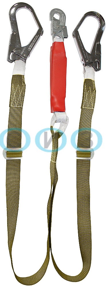 Строп аАдрег К50+К20 NL - страховочный регулируемый строп, выполнен из арамидной ленты с амортизатором, с двумя большими монтажными карабинами и одним малым монтажным карабином.