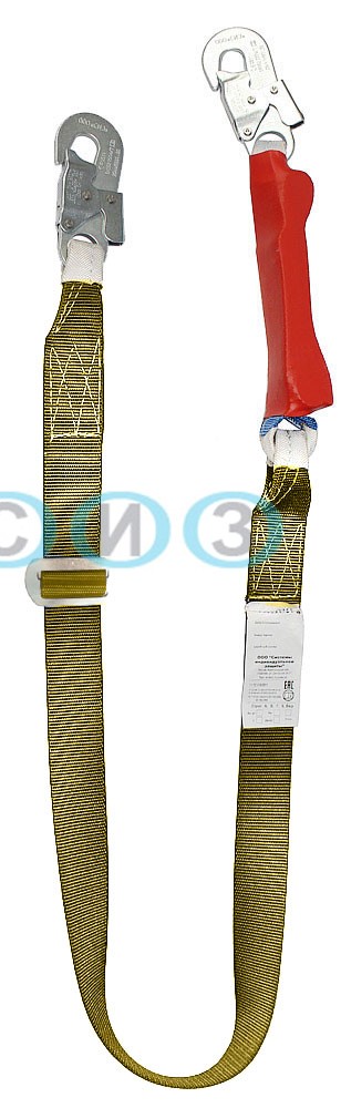 Строп аАрег К20+К20 NL - удерживающий регулируемый строп, выполнен из арамидной ленты с амортизатором и двумя малыми монтажными карабинами.