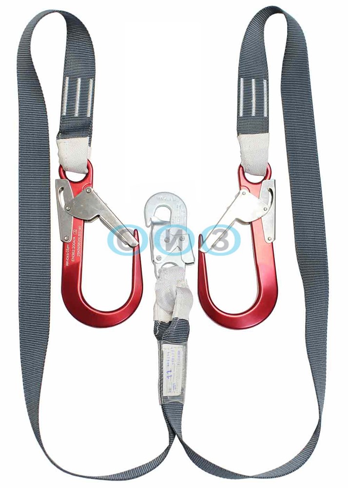 Строп Ад К60+К20 NL - страховочный строп, двойной (двуплечий) из полиэфирной ленты, с двумя большими монтажными карабинами и одним малым монтажным карабином