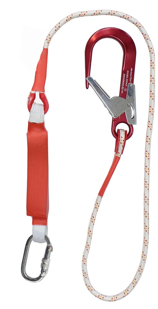 Строп аВ К60+Кс NL (канат в оплетке) - страховочный строп из капроновой верёвки с амортизатором, одним большим монтажным карабином и одним соединительный карабином.