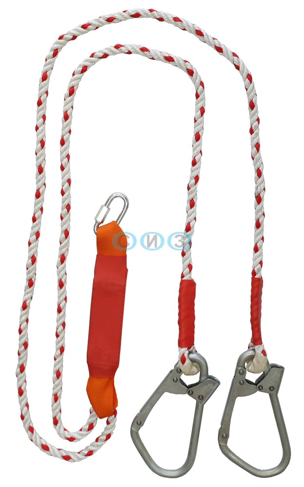 Строп аВд К50+Кс (канат) - страховочный строп, двойной (двуплечий) из полиамидного каната с амортизатором, двумя большими монтажными и одним соединительным карабином.