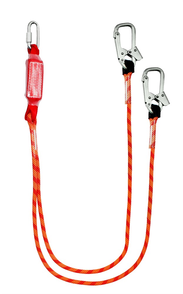 Строп аВд+Кс (канат в оплетке) - страховочный строп, двойной (двуплечий) из капроновой верёвки с амортизатором, двумя монтажными и одним соединительным карабином.