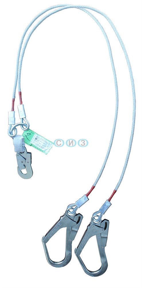 Строп Бд К50+К20 NL - страховочный строп, двойной (двуплечий) из металлического троса в ПВХ оболочке, двумя большими монтажными и одним малым монтажным карабином