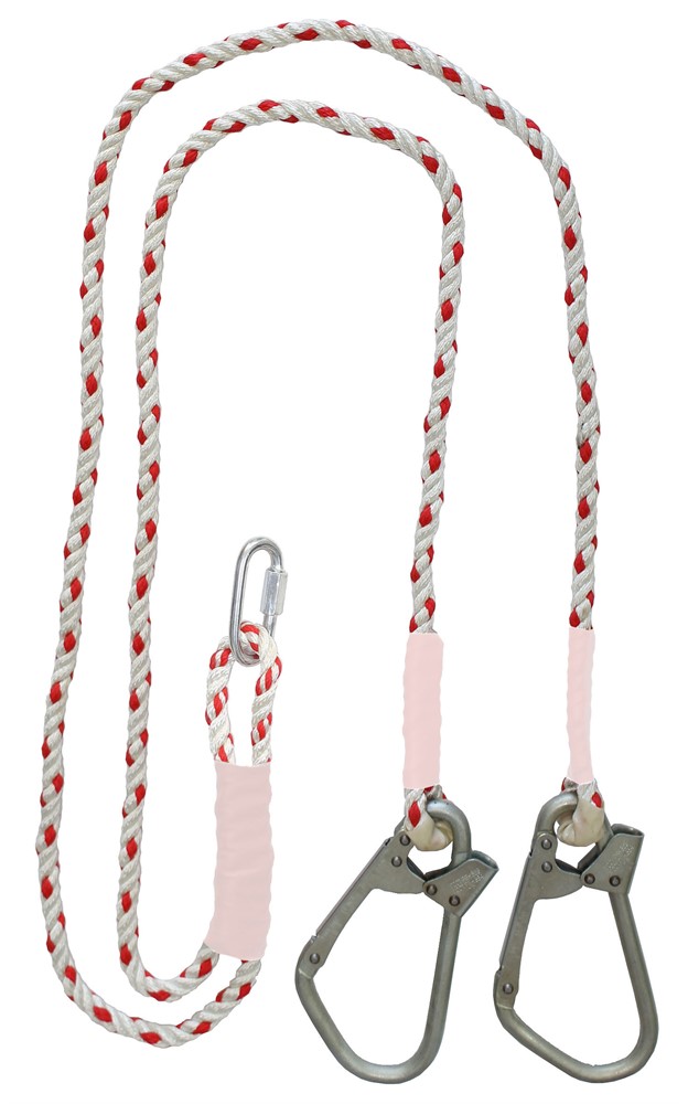 Строп Вд К50+Кс (канат) - страховочный строп, двойной (двуплечий) из полиамидного каната, двумя большими монтажными и одним соединительным карабином.