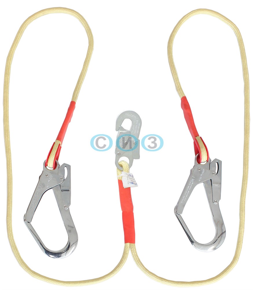 Строп Вердог К50+К20 NL - страховочный строп, двойной (двуплечий) из каната с оплеткой из арамидного огнеупорного волокна, с двумя большими монтажными карабинами и одним малым монтажным карабином.