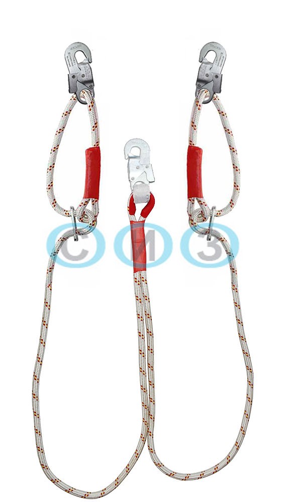 Строп Врегд К20+К20 NL (канат в оплетке) - страховочный регулируемый двойной (двуплечий) строп из капроновой верёвки с тремя малыми монтажными карабинами.