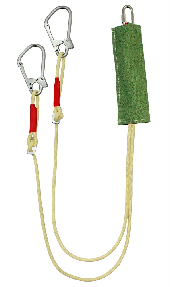 Строп аВеррегдог К50+Кс - страховочный строп, двойной (двуплечий) регулируемый из арамидного каната с амортизатором в чехле из огнеупорного материала, двумя большими монтажными и одним соединительным карабином