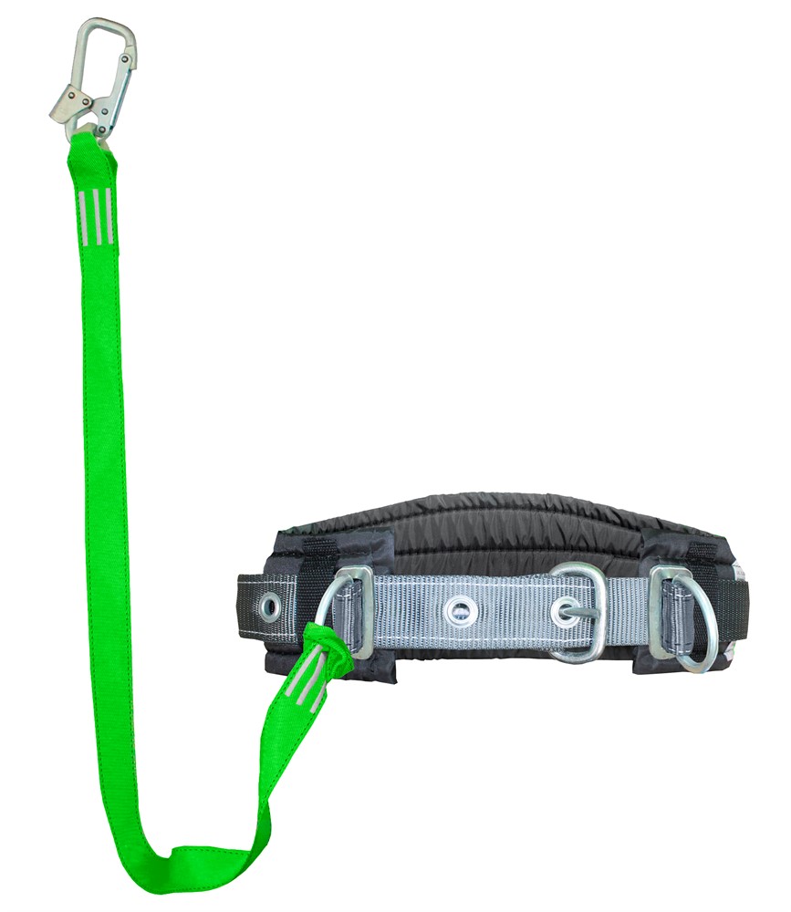 Состоит из ремня с пряжкой, уширенного кушака, двух D-колец и стропа из полиамидного каната с монтажным карабином. Пояс упакован в водонепроницаемый пакет и содержит паспорт и инструкцию по применению.