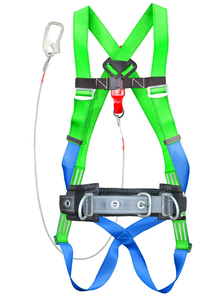 Тип "ДаБ" - Пояс предохранительный строительный с наплечными и набедренными лямками, и стропом из металлического троса в ПВХ оболочке.