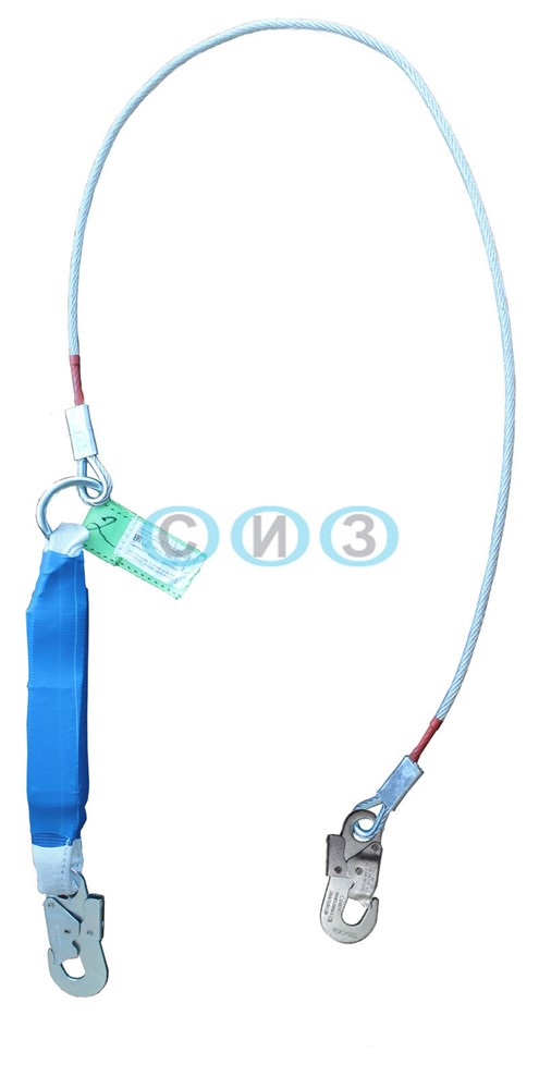 Строп аБ К20+К20 NL - страховочный строп из металлического троса в ПВХ оболочке с амортизатором, с двумя малыми монтажными карабинами