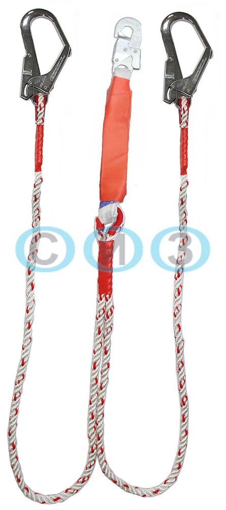 Строп аВд К50+К20 NL (канат) - страховочный строп, двойной (двуплечий) из полиамидного каната с амортизатором, с двумя большими монтажными карабинами и одним малым монтажным карабином..