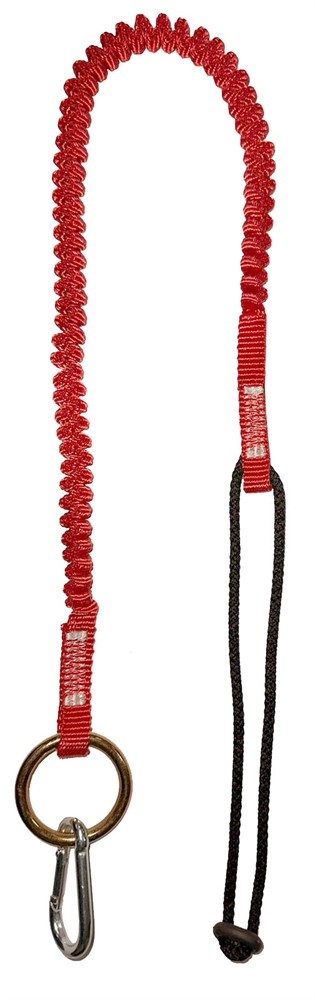 Готовый к использованию комплект для удержания инструмента, состоящий из стропы и карабина.