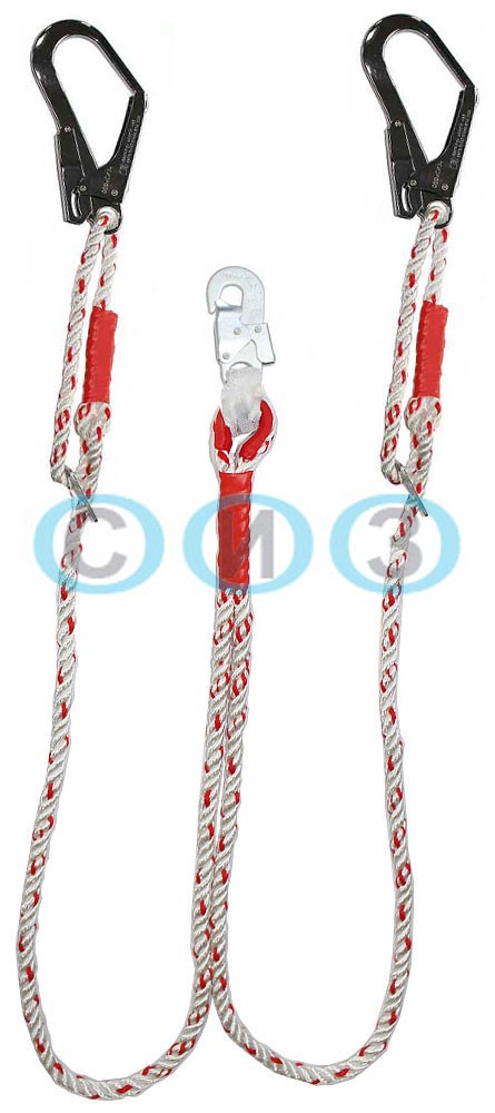 Строп Вдрег К50+К20 NL (канат) - страховочный регулируемый строп, двойной (двуплечий) из полиамидного каната с двумя большими монтажными карабинами и одним малым монтажным карабином..