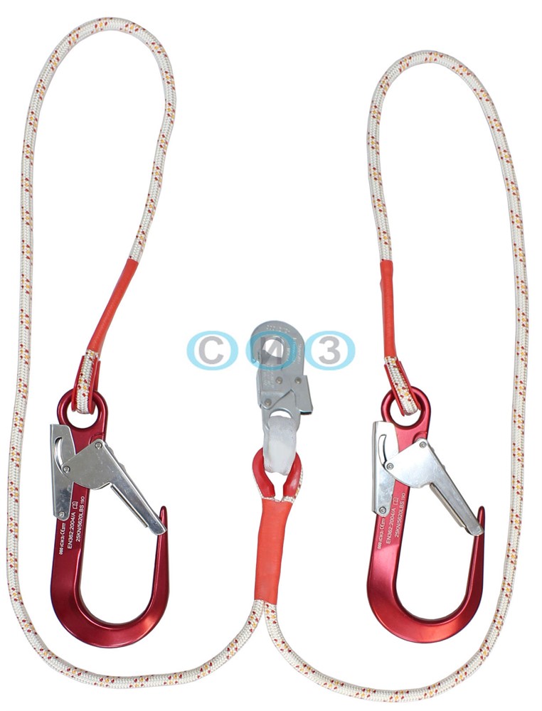 Строп Вд К60+К20 NL (канат в оплетке) - страховочный двойной (двуплечий) строп из капроновой верёвки с одним большим монтажным карабином и одним малым монтажным карабином.