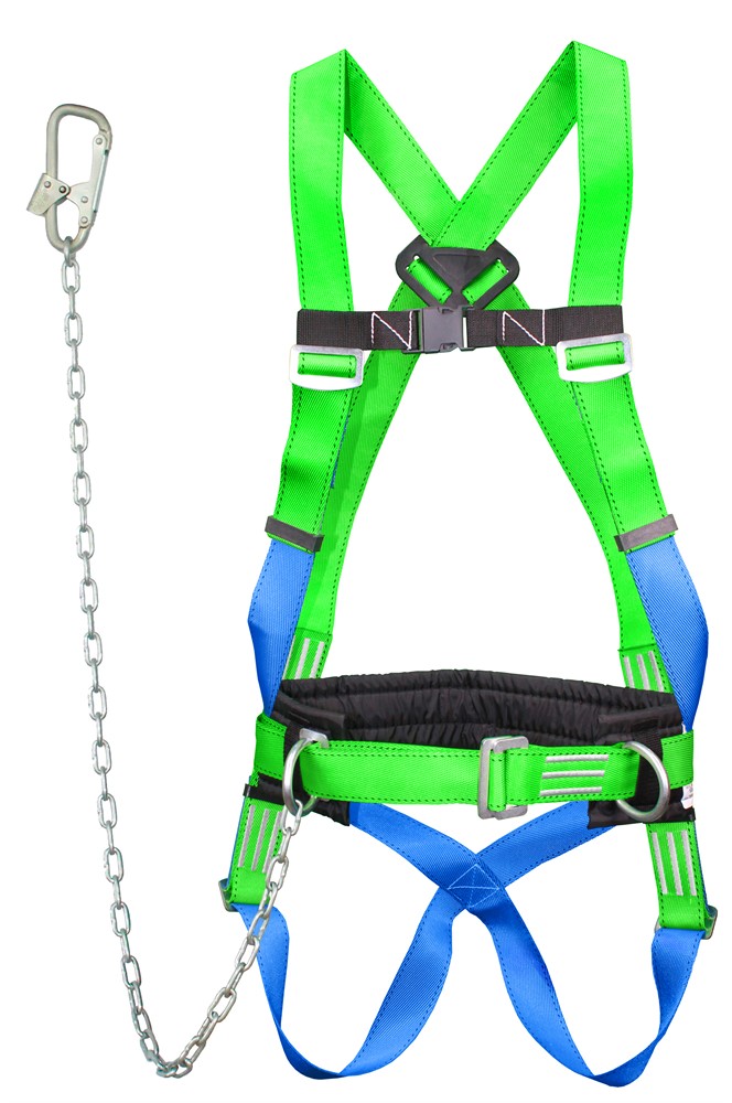 УС 2 ГЖ ук - Удерживающая система с наплечными и набедренными лямками, уширенным кушаком и стропом из металлической цепи.